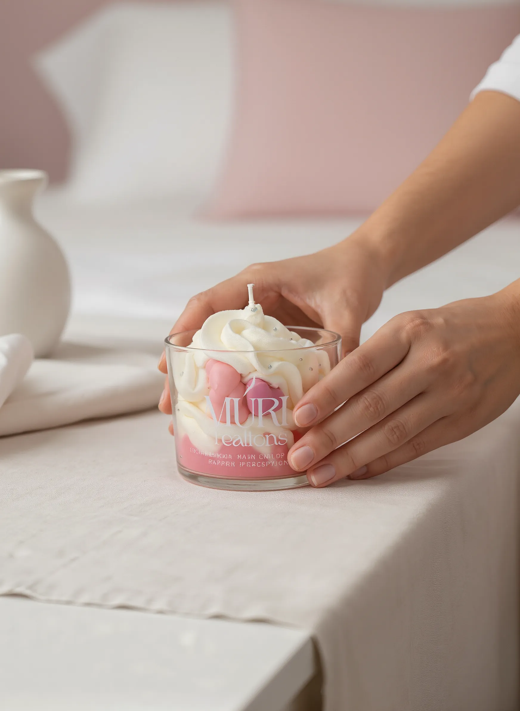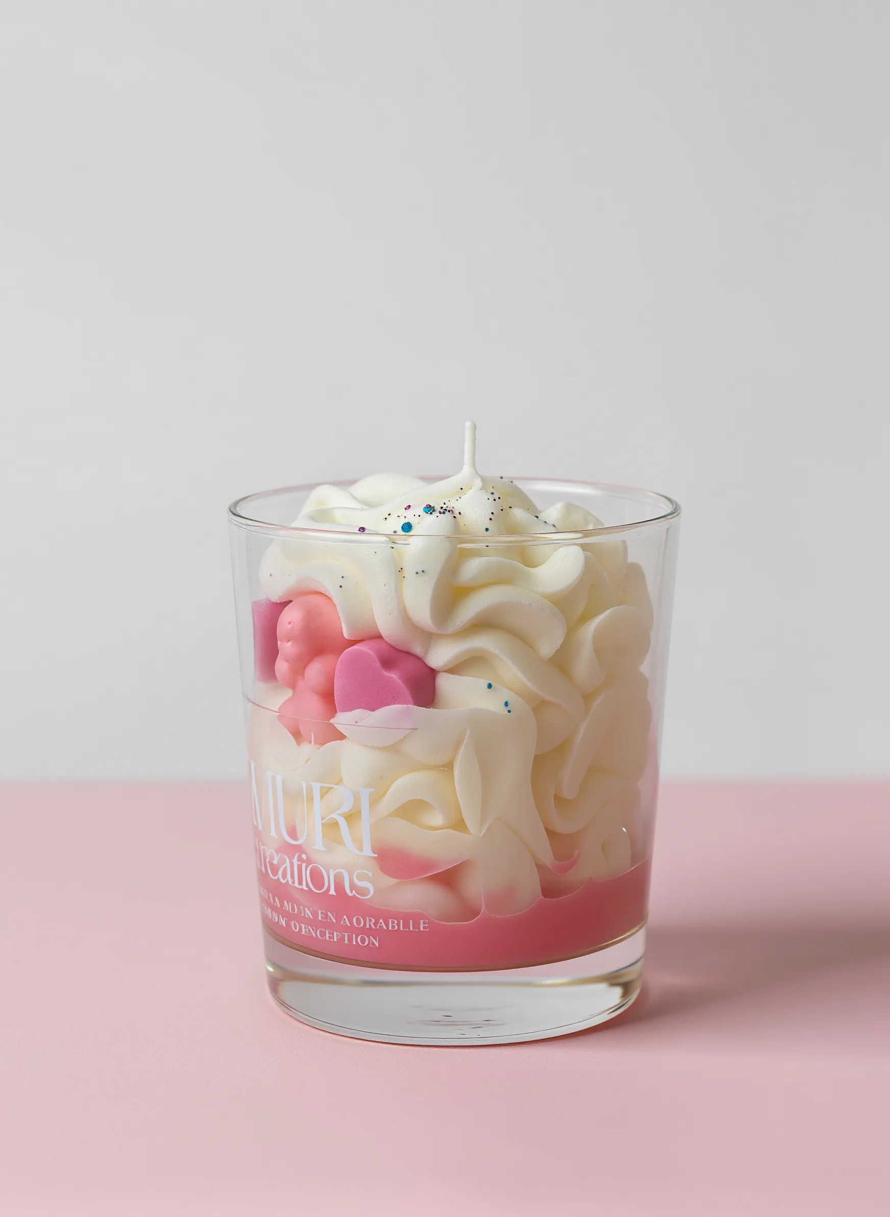 Entièrement fabriquée à la main avec une cire végétale européenne et des parfums conçus en France, cette bougie est aussi belle qu’apaisante. Sa décoration soignée évoque l’univers enfantin avec des touches roses, des éclats nacrés et une ambiance visuelle douce et chaleureuse.