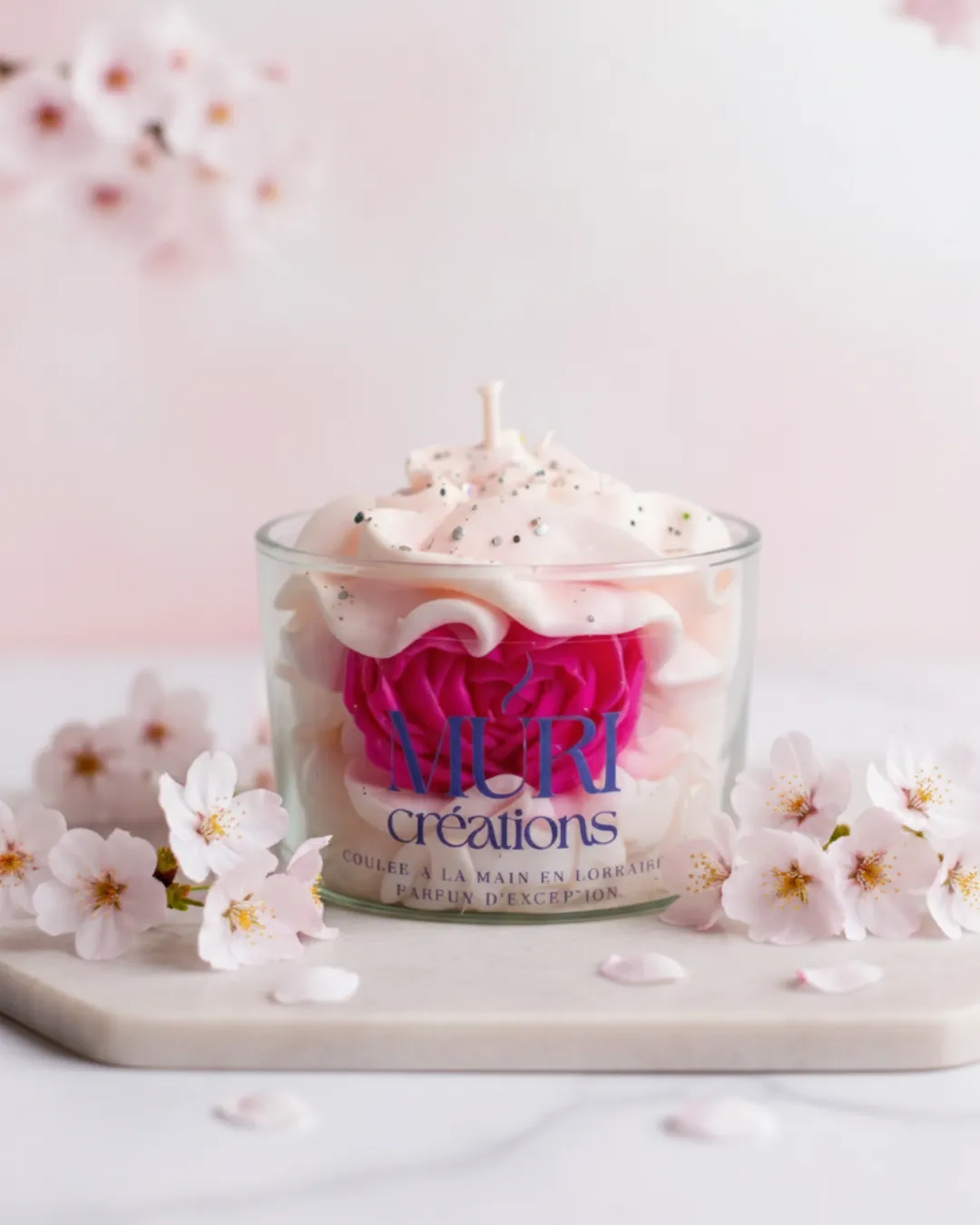 Coulée à la main dans un verre sérigraphié, cette bougie à la fleur de cerisier séduit autant par son parfum floral subtil que par son esthétique soignée.